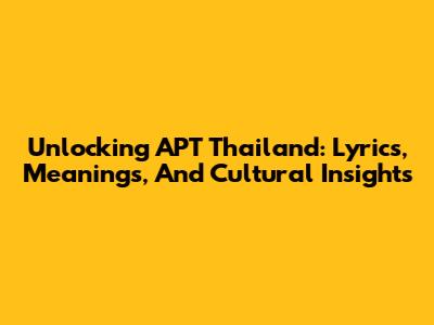 Unlocking APT Thailand: Lyrics, Meanings, And Cultural Insights