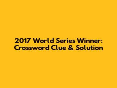 Are you struggling to solve a crossword puzzle and the clue is "2017 World Series winner"? Don't worry, you're not alone! Crossword puzzles can be tricky, but they're also a lot of fun. Let's dive into how to crack this particular clue and explore some interesting facts about the 2017 World Series.