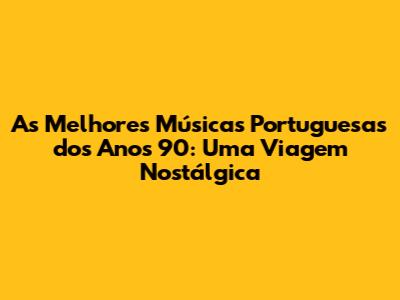 Escolher as melhores músicas portuguesas dos anos 90 é uma tarefa difícil, pois foram tantas as músicas que marcaram a década. Mas, para quem ama a música portuguesa dos anos 90, algumas músicas são simplesmente inesquecíveis. Aqui estão algumas sugestões: