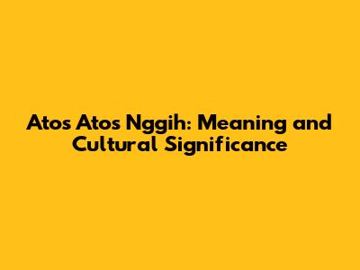 The Cultural Significance of "Atos Atos Nggih"