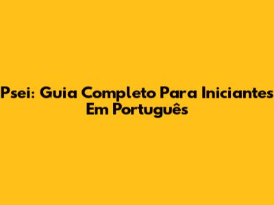 Psei: Guia Completo Para Iniciantes Em Português