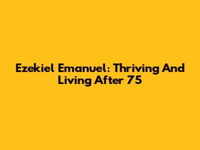 Ezekiel Emanuel: Thriving And Living After 75