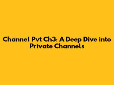 Channel Pvt Ch3: A Deep Dive Into Private Channels