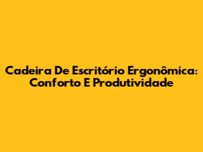 Cadeira De Escritório Ergonômica: Conforto E Produtividade