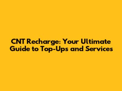 CNT Recharge: Easy Guide To Top-Ups & Services