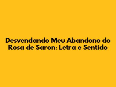 Desvendando 'Meu Abandono' Do Rosa De Saron: Letra E Sentido