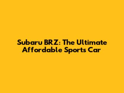Subaru BRZ: The Ultimate Affordable Sports Car