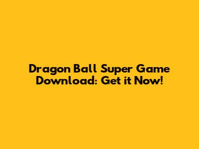 Dragon Ball Super Game Download: Get It Now!