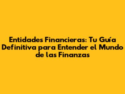 Entidades Financieras: Guía Completa Y Estrategias Clave