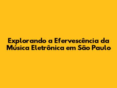 O Cenário da Música Eletrônica em São Paulo