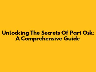 Unlocking The Secrets Of Part Osk: A Comprehensive Guide