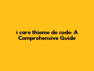 Why Does i care thieme de code Matter So Much?