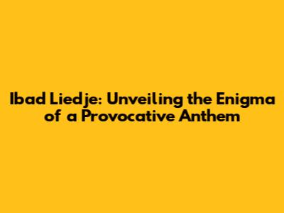 Ibad Liedje: Unraveling The Mystery Of A Controversial Song