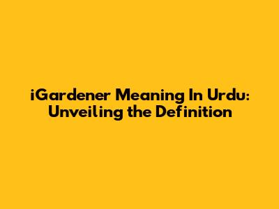 IGardener Meaning In Urdu: Unveiling The Definition