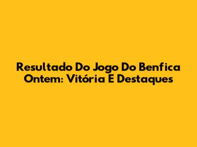 Resultado Do Jogo Do Benfica Ontem: Vitória E Destaques