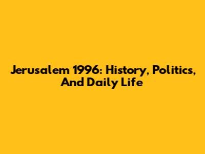 Jerusalem 1996: History, Politics, And Daily Life