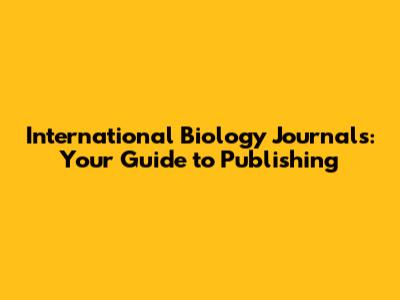 International Biology Journals: Your Guide To Publishing