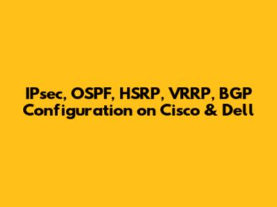 Configuring IPsec, OSPF, HSRP/VRRP, and BGP on Cisco and Dell devices is crucial for building secure, scalable, and highly available networks. While the specific commands and syntax may vary slightly between vendors, the underlying principles remain the same. By understanding these protocols and their configuration options, you can design and maintain robust network infrastructures that meet the evolving needs of your organization. Remember to always consult the vendor documentation for the most accurate and up-to-date information. Keep networking, folks!