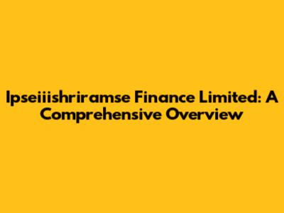 What Exactly Does Ipseiiishriramse Finance Limited Do?