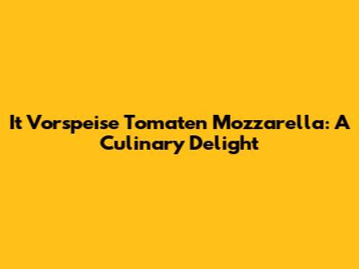 It Vorspeise Tomaten Mozzarella: A Culinary Delight