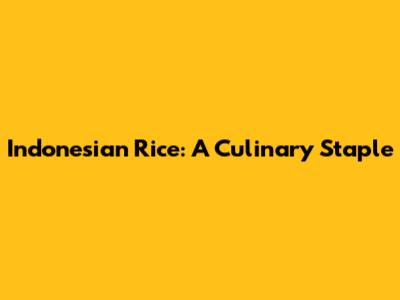 Indonesian Rice: A Culinary Staple