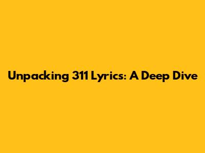 Unpacking 311 Lyrics: A Deep Dive