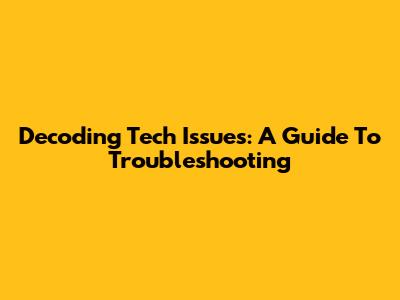 Decoding Tech Issues: A Guide To Troubleshooting