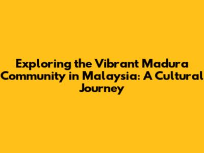 Madura Community In Malaysia: A Cultural Exploration