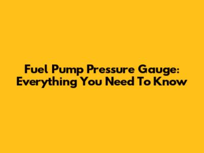 Fuel Pump Pressure Gauge: Everything You Need To Know