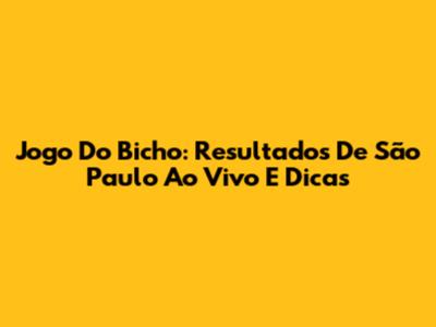 Jogo Do Bicho: Resultados De São Paulo Ao Vivo E Dicas