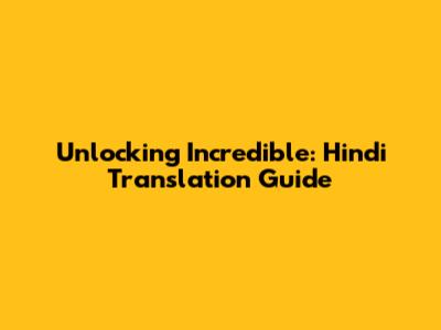 Unlocking Incredible: Hindi Translation Guide