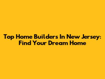 Top Home Builders In New Jersey: Find Your Dream Home