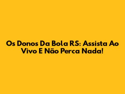 Os Donos Da Bola RS: Assista Ao Vivo E Não Perca Nada!