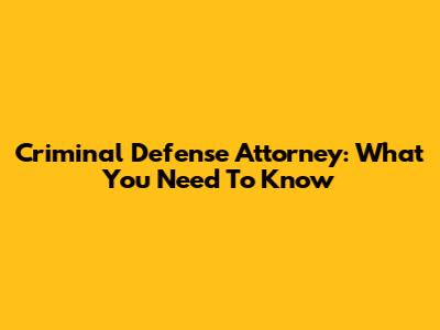 Criminal Defense Attorney: What You Need To Know