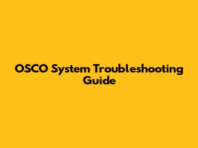 OSCO System Troubleshooting Guide