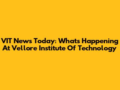 VIT News Today: What's Happening At Vellore Institute Of Technology