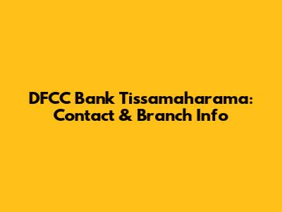 DFCC Bank Tissamaharama: Contact & Branch Info