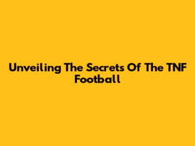 Unveiling The Secrets Of The TNF Football