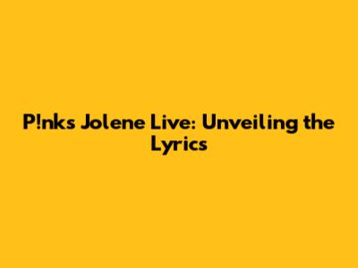 P!nk Jolene Live: Unveiling The Lyrics