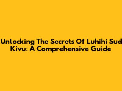 Unlocking The Secrets Of Luhihi Sud Kivu: A Comprehensive Guide