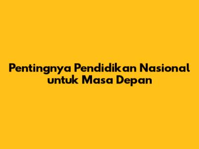 Pentingnya Pendidikan Nasional Untuk Masa Depan