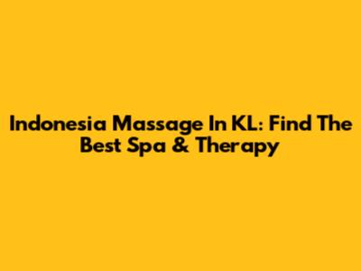 Indonesia Massage In KL: Find The Best Spa & Therapy