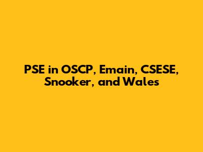 PSE In OSCP, Emain, CSESE, Snooker, And Wales