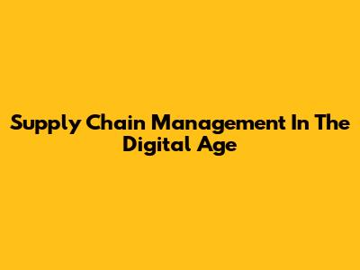 Supply Chain Management In The Digital Age
