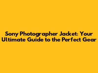 Sony Photographer Jacket: Your Ultimate Guide