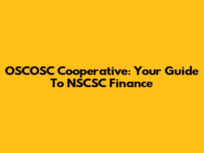 OSCOSC Cooperative: Your Guide To NSCSC Finance