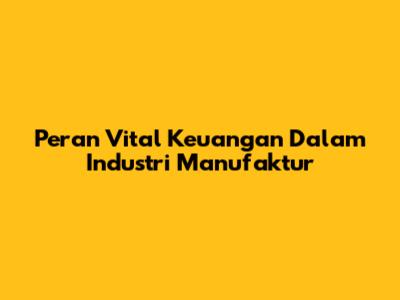 Peran Vital Keuangan Dalam Industri Manufaktur
