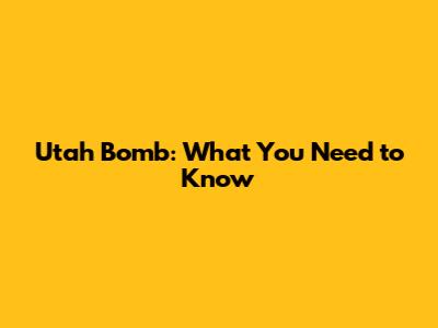 Utah Bomb: What You Need To Know