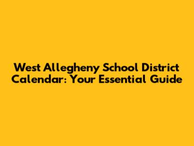 West Allegheny School District Calendar: Key Dates & Info